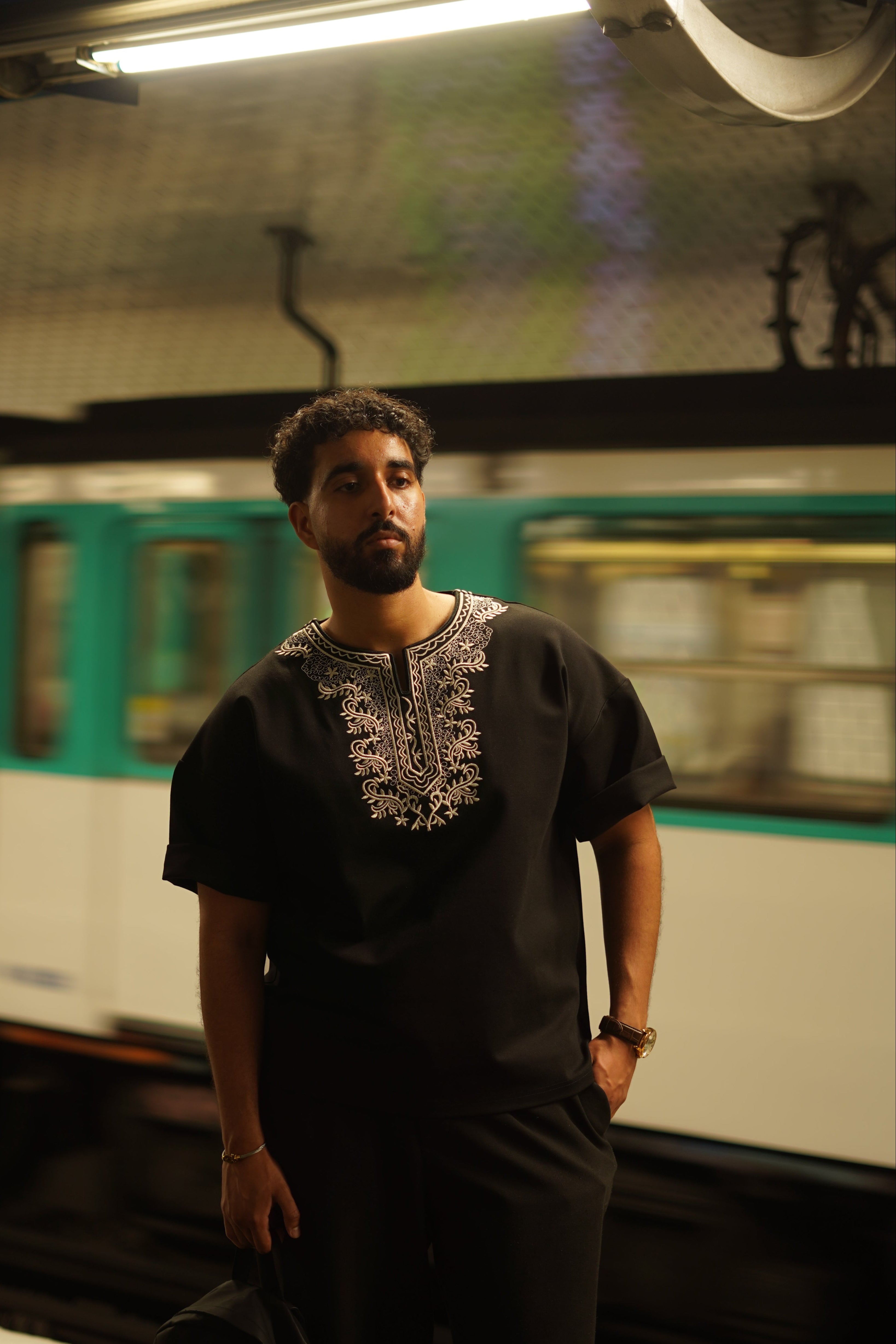 Cette première collection Foqara réunit quatre gammes où coupes contemporaines et artisanat hérité se répondent. Ṭarz, qitān et tissus traditionnels en composent l’essence.